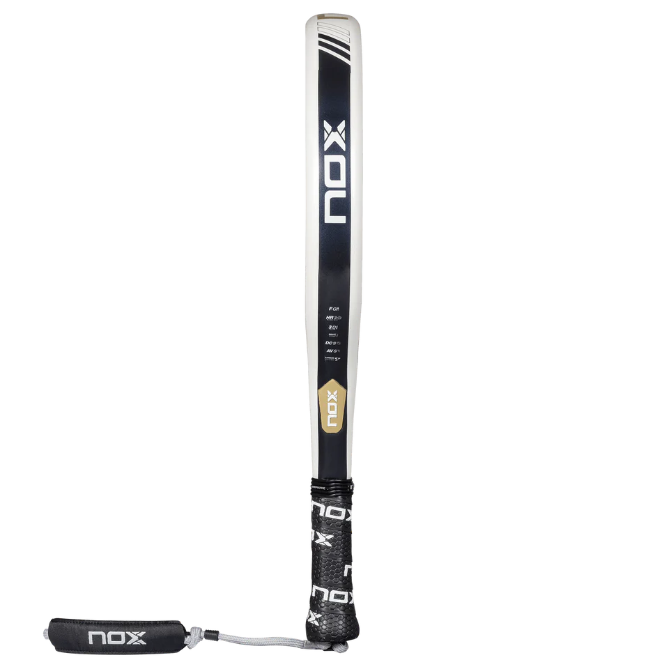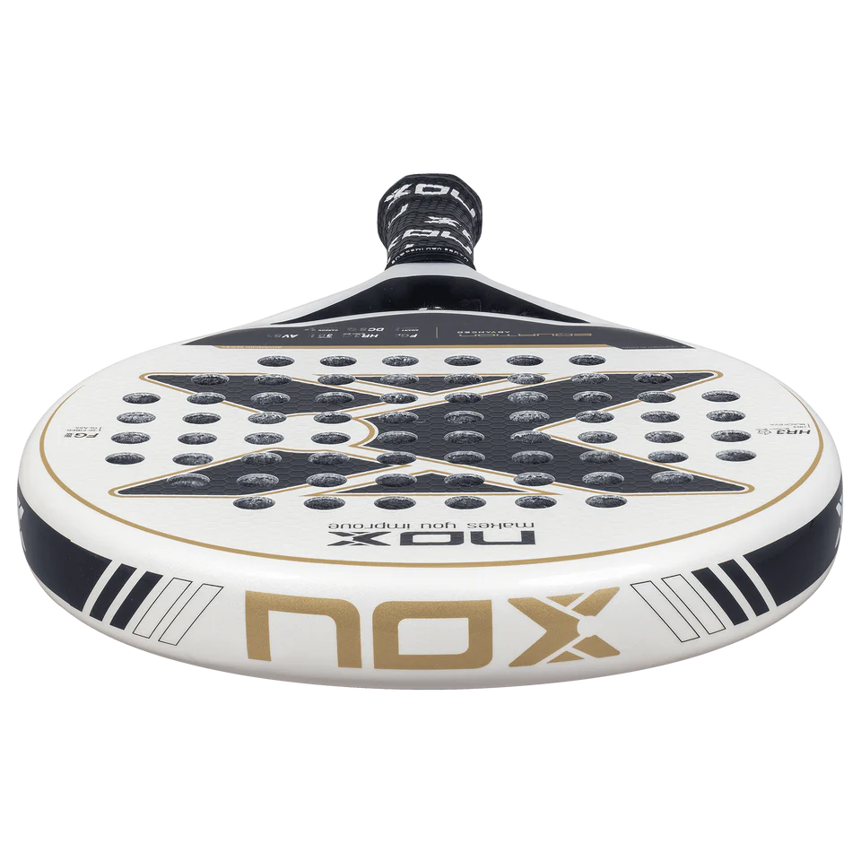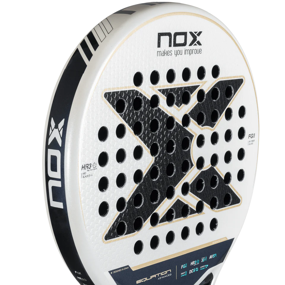 The NOX Advanced Equation 2026 is a round shaped padel racket that blends power, control, and comfort for intermediate to advanced players. Built with a carbon fiber frame, fiberglass face, and HR3 rubber core, it ensures superior stability, precision, and comfort for all-round performance on the court.