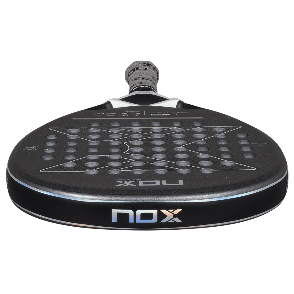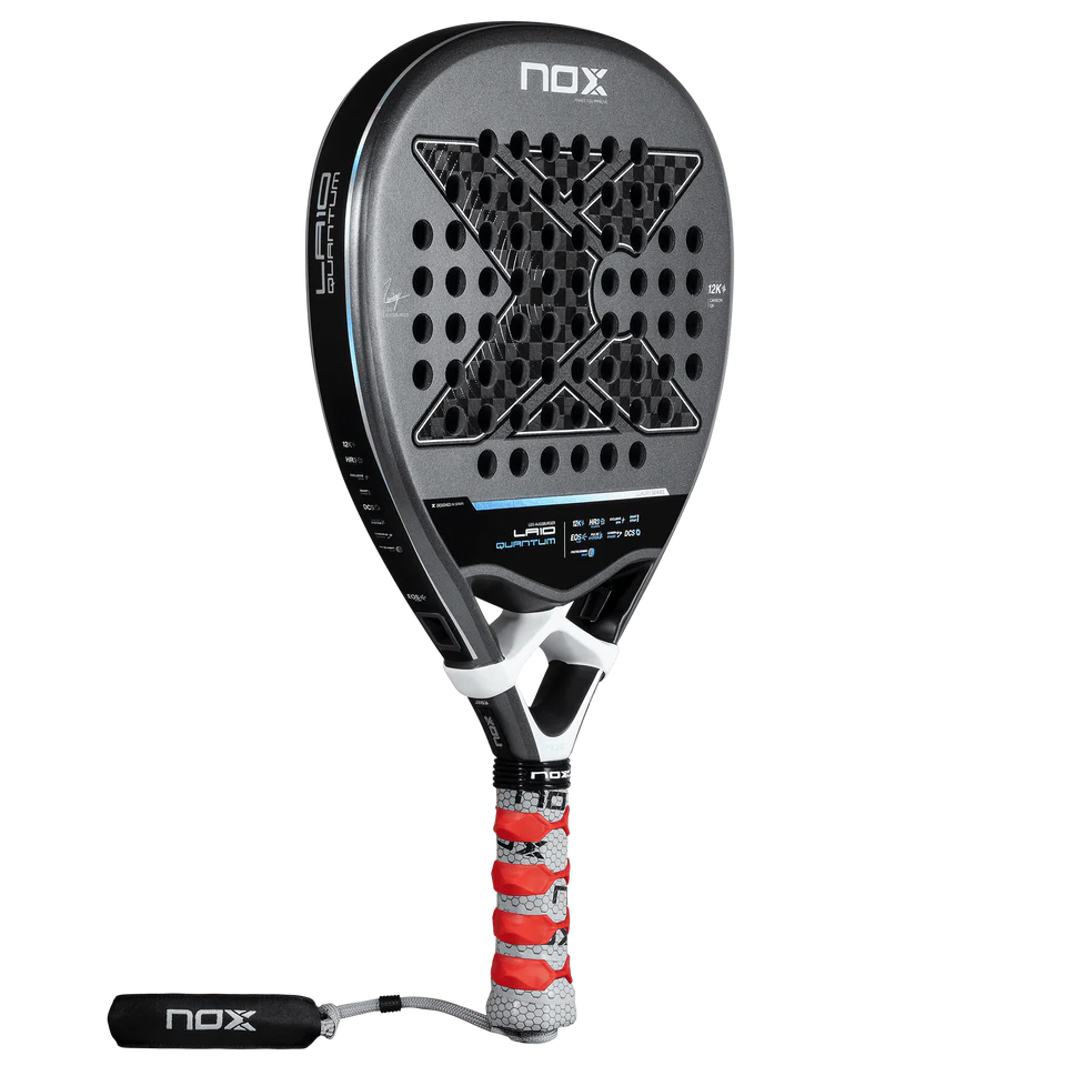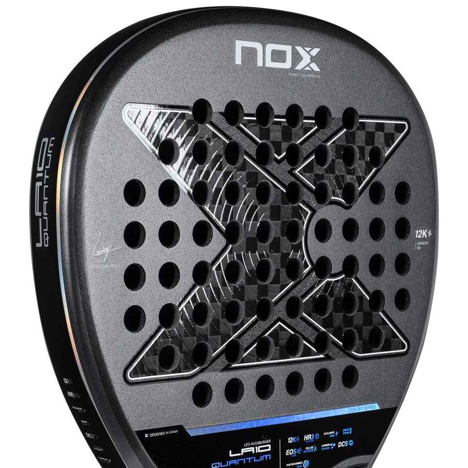 The NOX LA10 Quantum 12K by Leo Augsburger 2026 is built for players who command the court with speed, power, and precision. Its diamond shape, 12K carbon fiber face, and HR3 core deliver explosive performance, perfect control, and incredible comfort making it the ideal choice for advanced and competitive padel players.